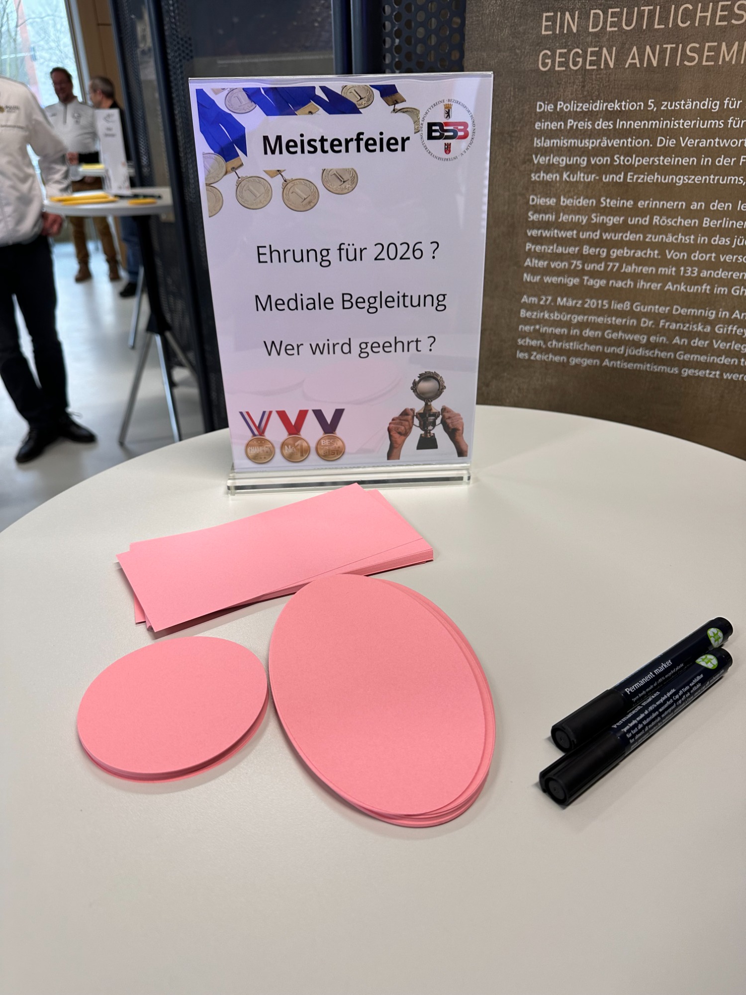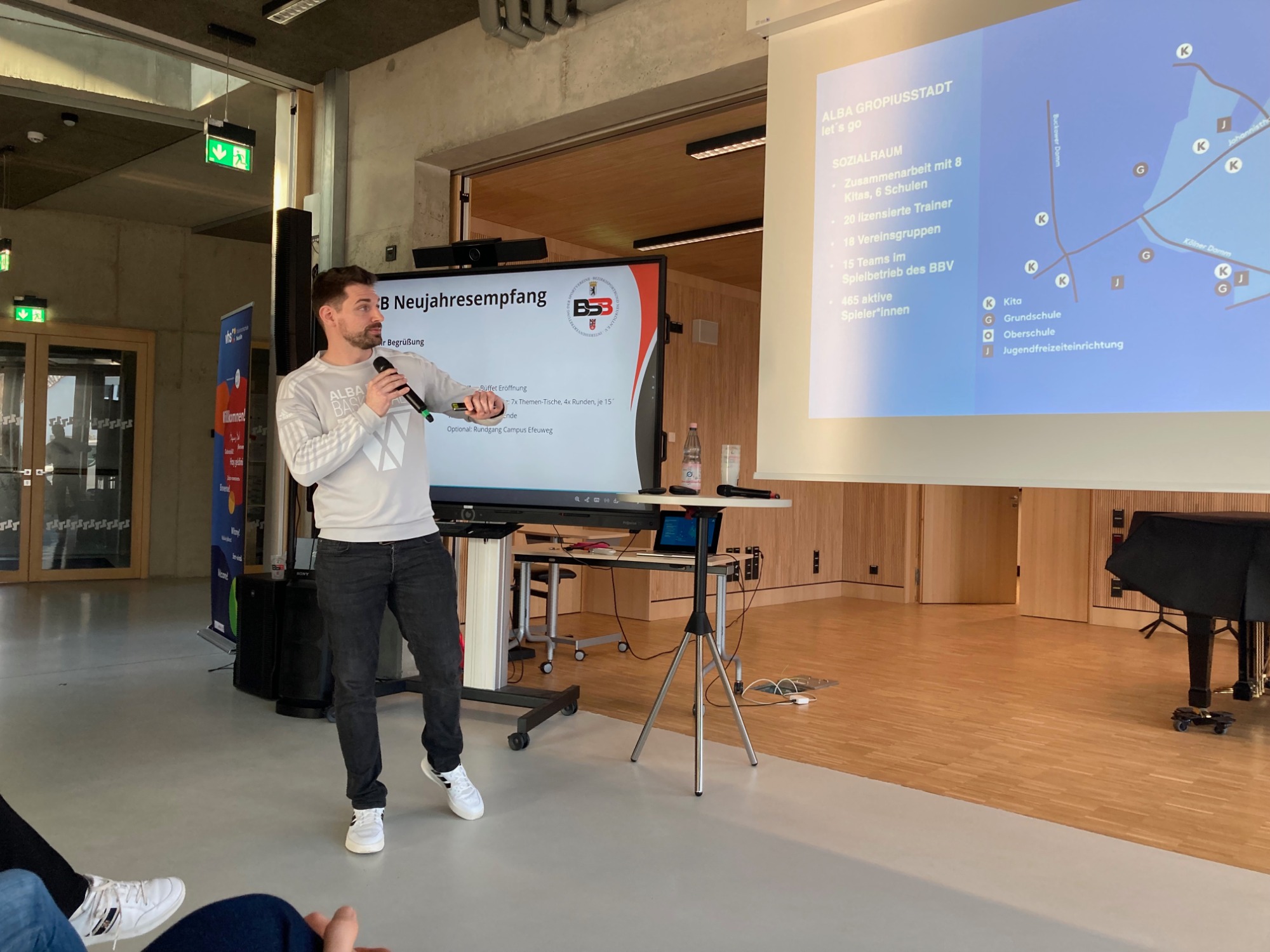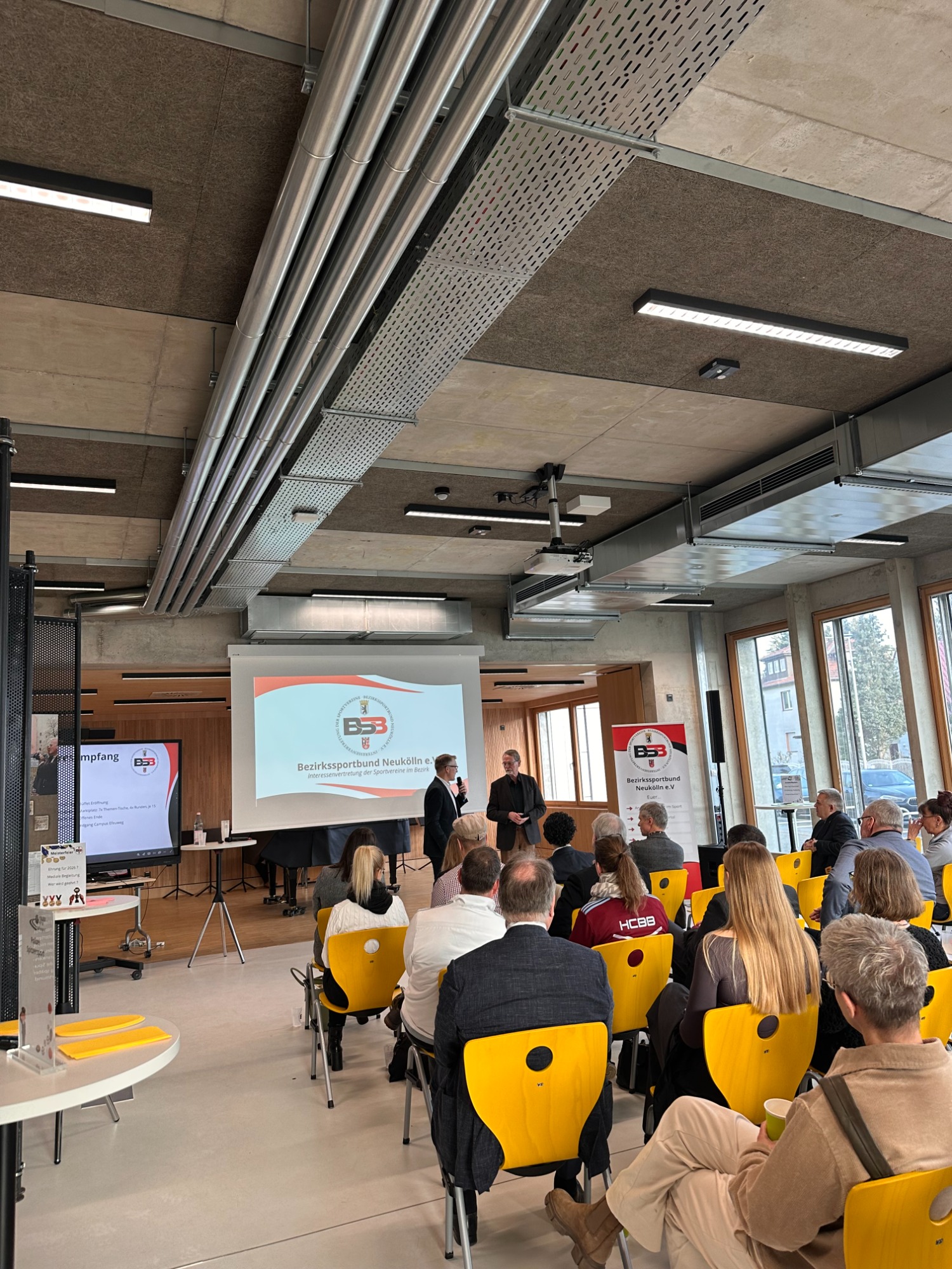 Nach den Präsentationen boten Thementische und ein gemeinsames Buffet Raum für Austausch und vertiefende Gespräche. Der Neujahrsempfang endete in entspannter Atmosphäre und mit einem positiven Ausblick auf die weitere Zusammenarbeit im Neuköllner Sport.