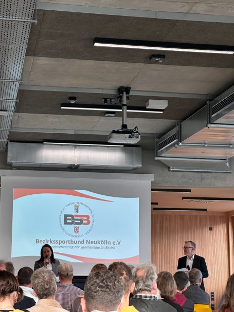 Sebastian Walther und Wolfram Miller stellten die Arbeit des Bezirkssportbundes Neukölln vor. Der Sportbund versteht sich als Interessenvertretung der Neuköllner Sportvereine und bringt deren Anliegen gebündelt in politische und verwaltungsbezogene Prozesse ein. Die wachsende Zahl interessierter Vereine zeigt die zunehmende Bedeutung dieser Arbeit. Interessierte Vereine können jederzeit Kontakt aufnehmen unter